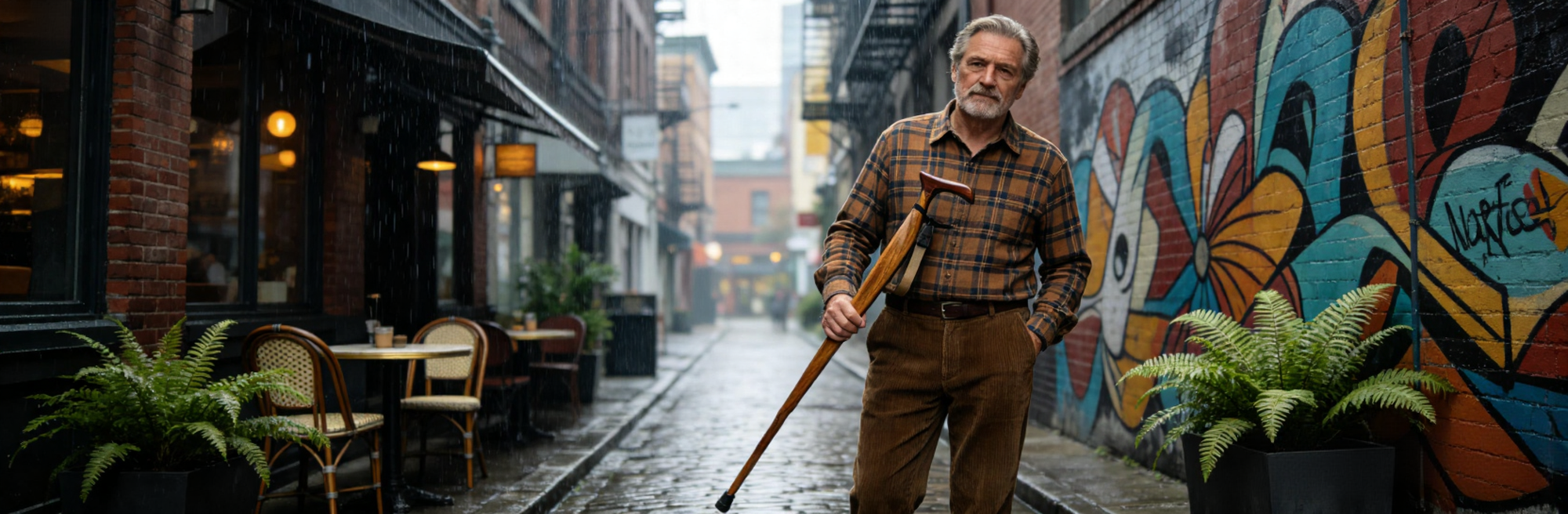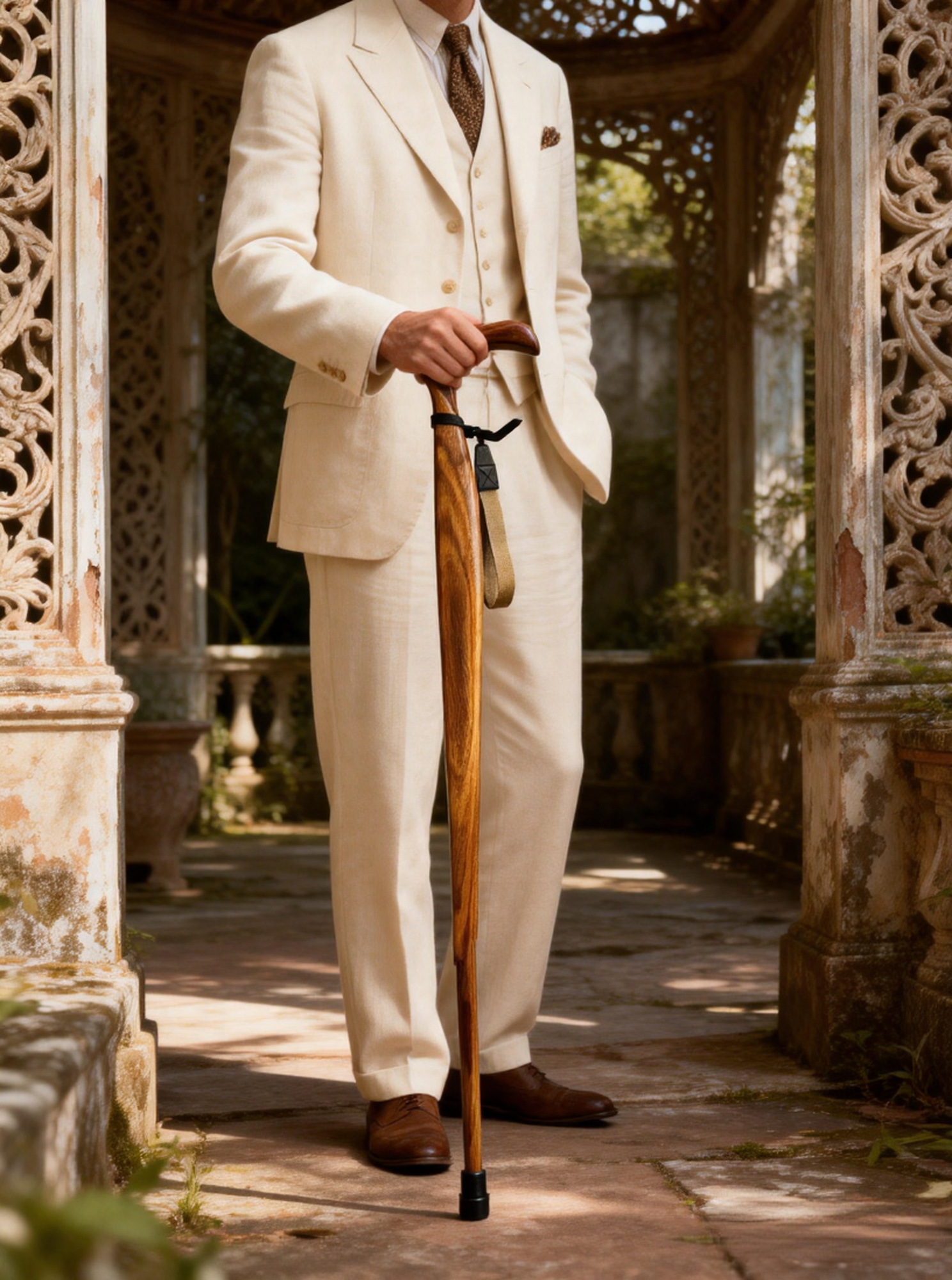 Ergonomic Zebrawood Walking Cane with Wrist Strap